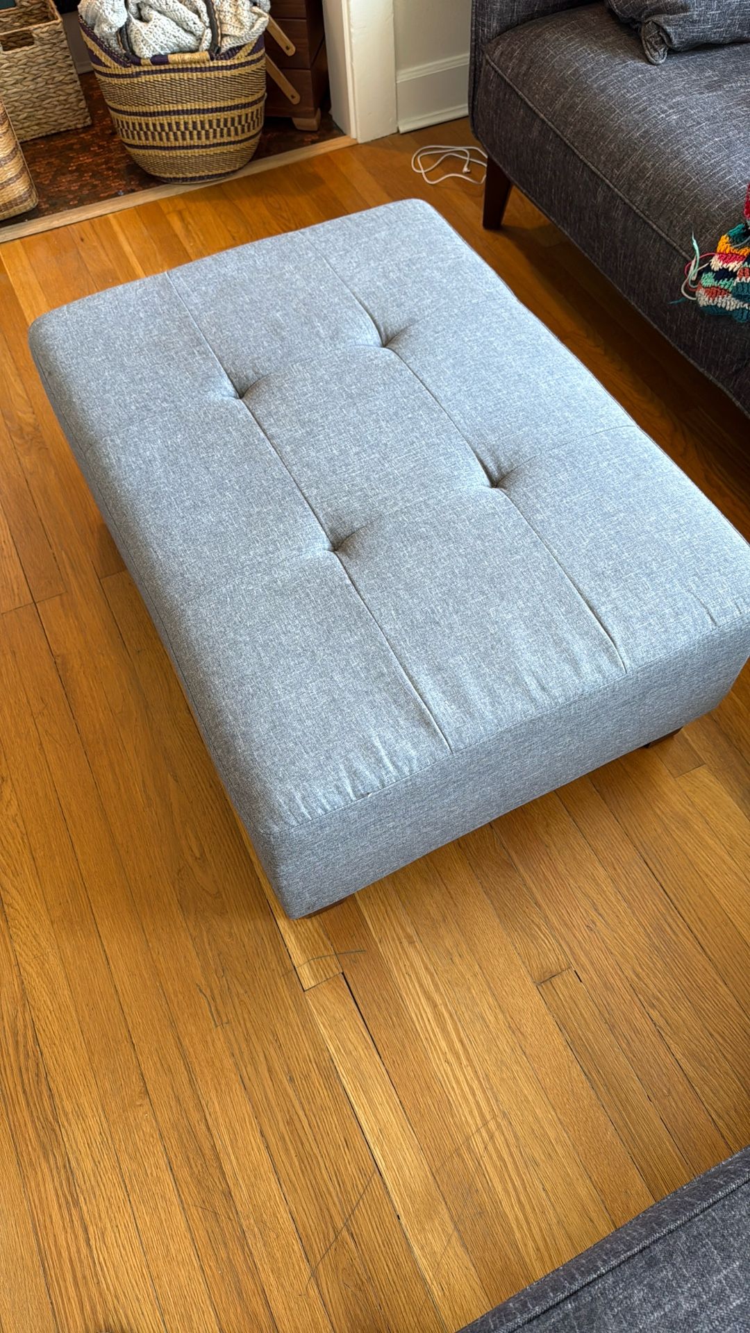 Gray upholstered storage ottoman Smoke-free home Good condition 16” tall 38” wide 28” deep Pick up only in west Seattle
