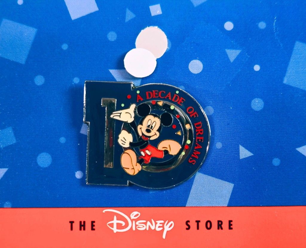 Disney Store 10th Anniversay "Decade of Dreams" pin Features Mickey Mouse Still in original packaging Made in China in 1997 Celebrates the 10th anniversarry of the Disney Store In great condition (refer to images for details)