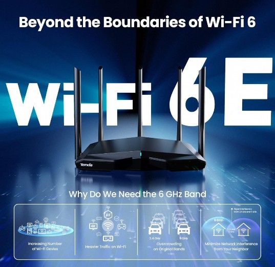 Tenda AXE5700 Smart WiFi 6E Router. Tri-Band Gigabit Wireless Router. With 5 High-Gain Antennas, Supports new 6GHz Band.
