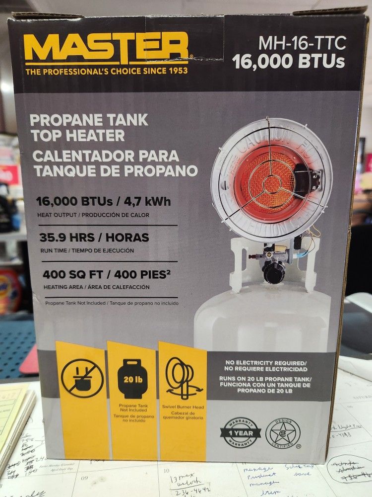 Master 16000 Btu Single Tank Top Heater.