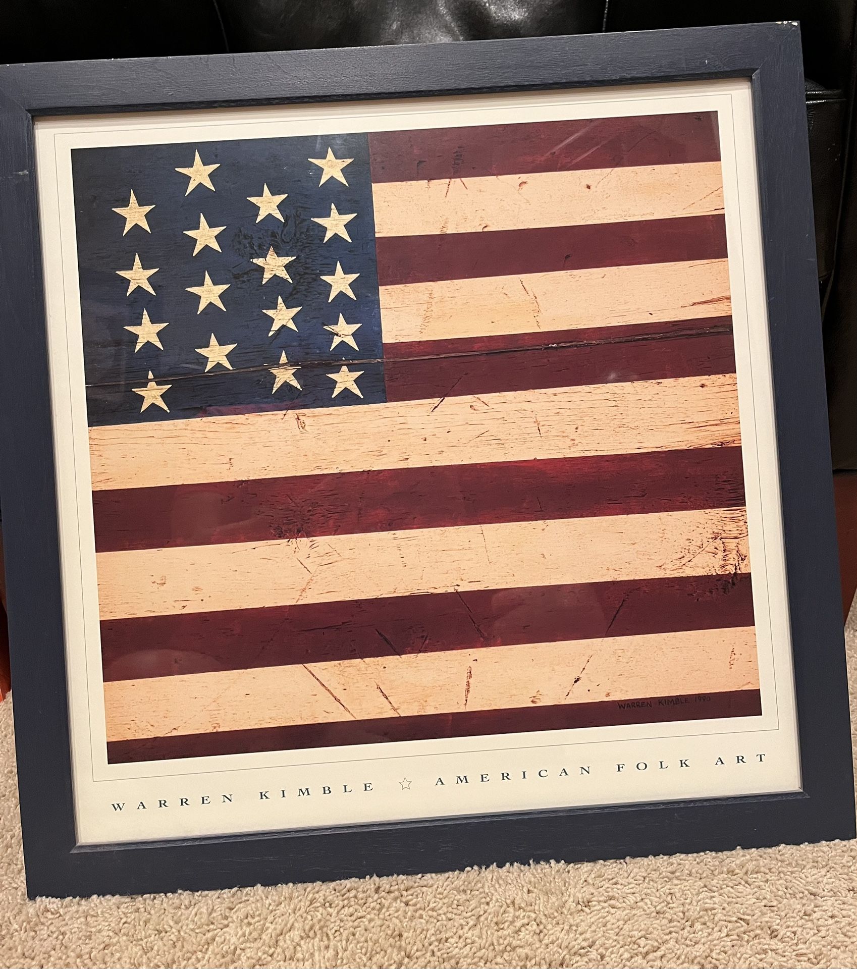 Warren Kimble American Flag Folk Art framed picture. Measures 20x20 inches. Great shape