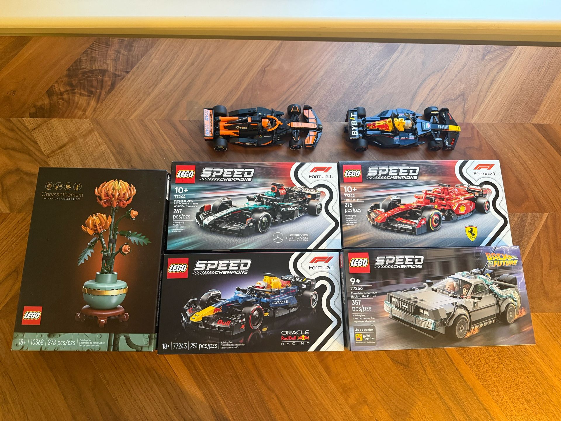 90 for all New - 77244 Mercedes Speed Champion New - 77242 Ferrari Speed Champion New - Oracle Red Bull Speed Champion New - Back to the Future Speed Champion Open Box 100% Complete, Oracle Red Bull Speed Champion Open Box 100% Complete McLaren Speed Champion New - 10368 Chrysanthemum Botanical