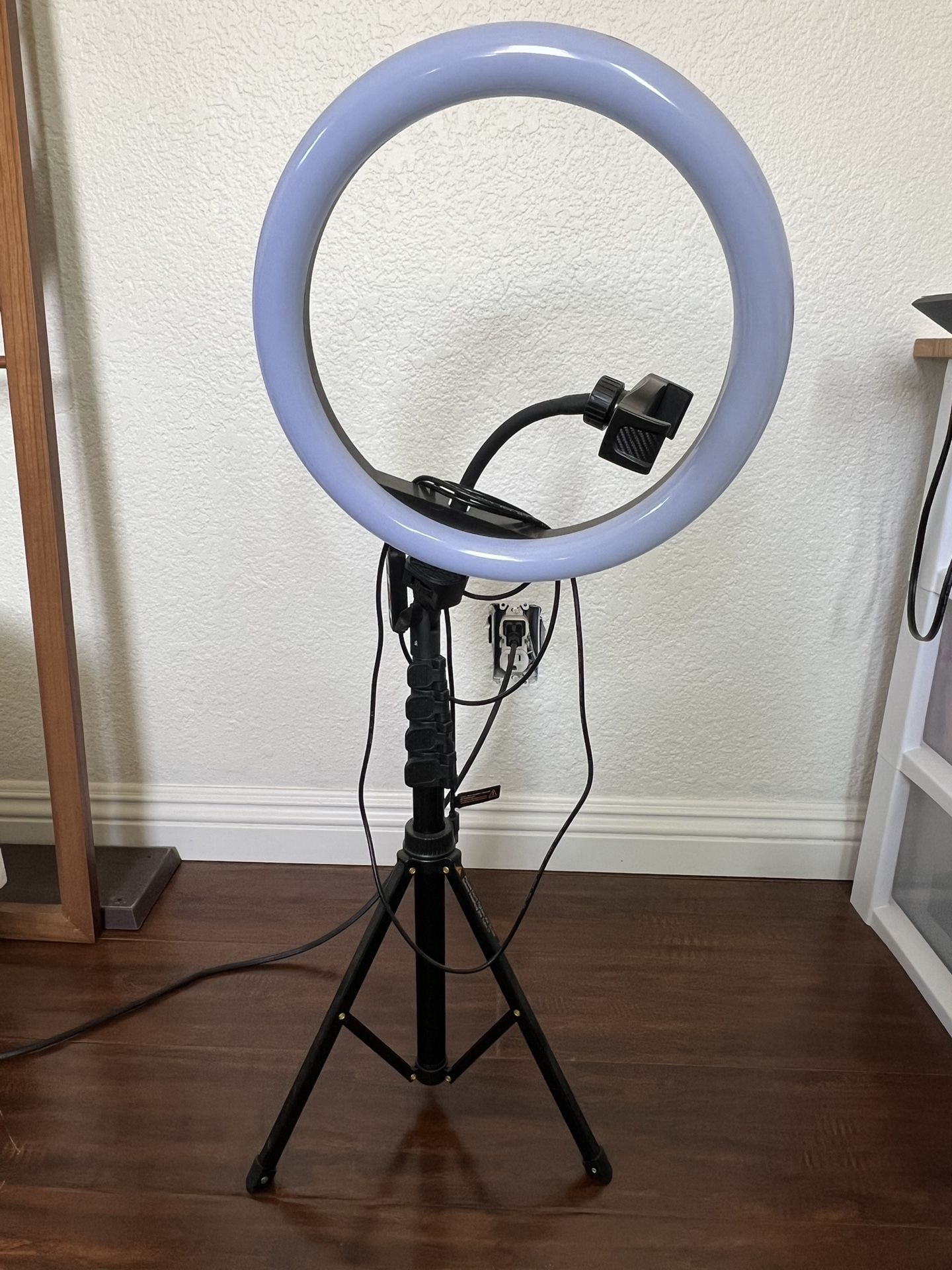 Like New Ring light with tripod and phone holder. Works great, good condition. Used 2 times at most. $15 - pick up only