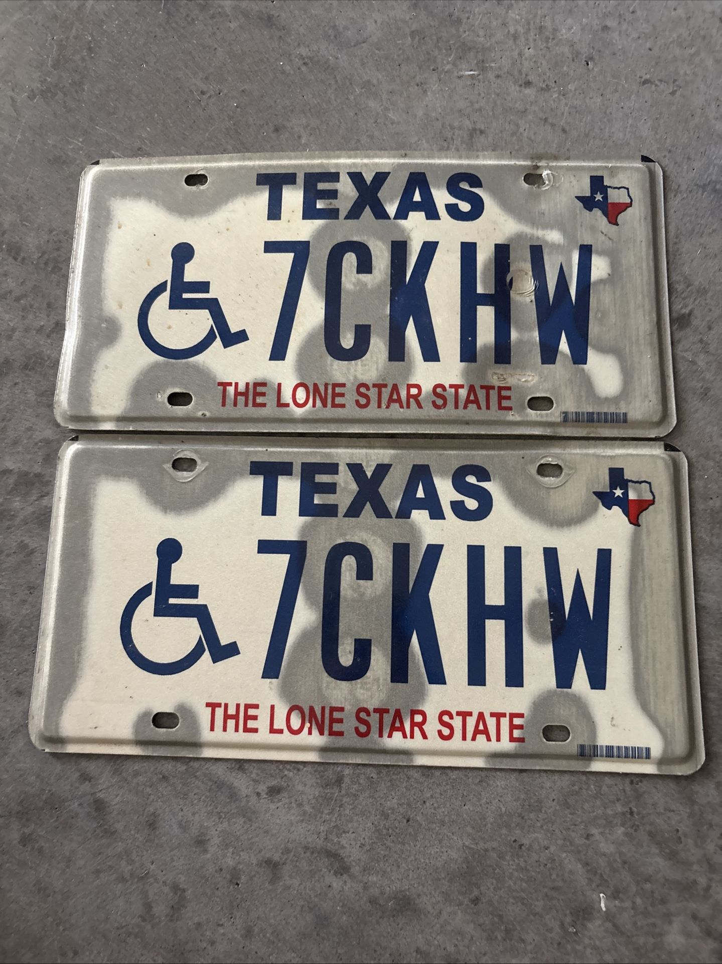 Texas TX Lone Star State Handicap License Plate 7CKHW Set Of 2