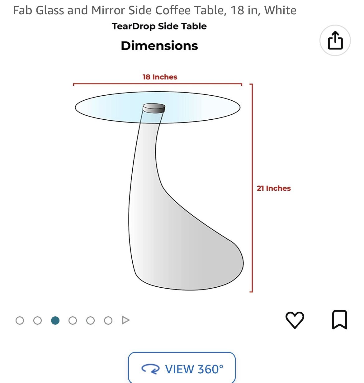 Fab Glass and Mirror Side Coffee Table, 18 in, White.. 2 Coffee Table Available . The Price For Each . New In The Box