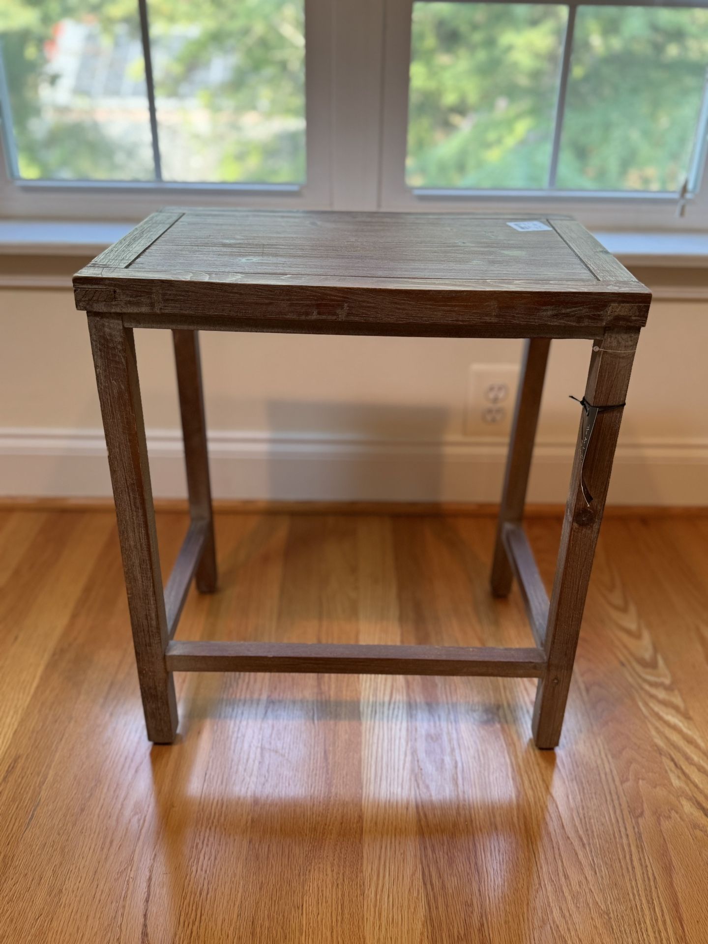 Wooden accent table with slightly ash gray finish. Never used. Paid $25 for it.