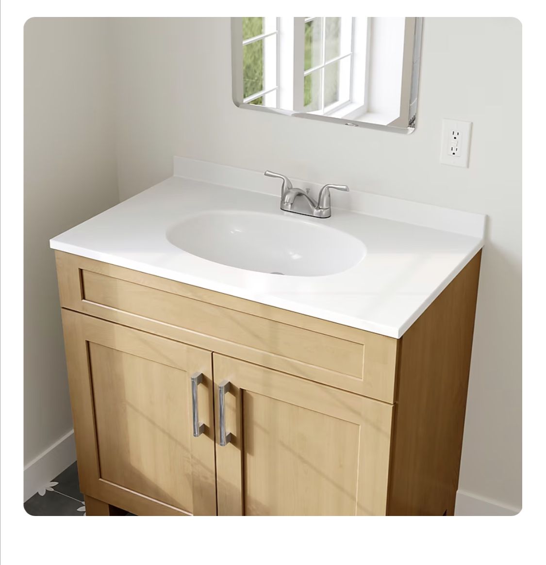 Brand spankin NEW, Never opened! 37-in x 22-in White Cultured Marble Integral Single Sink 3-Hole Bathroom Vanity Top Got the wrong size and was unable to return it.