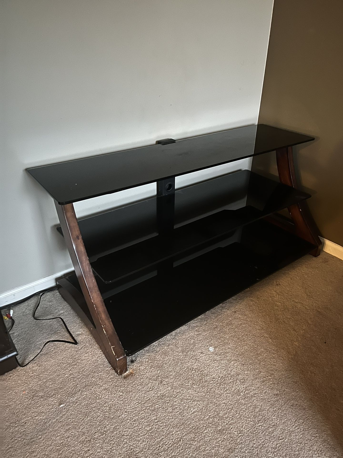 Glass & Wood Tv Stand with Metal Spine. Normal use. Very heavy. $60 - or, make me an offer!