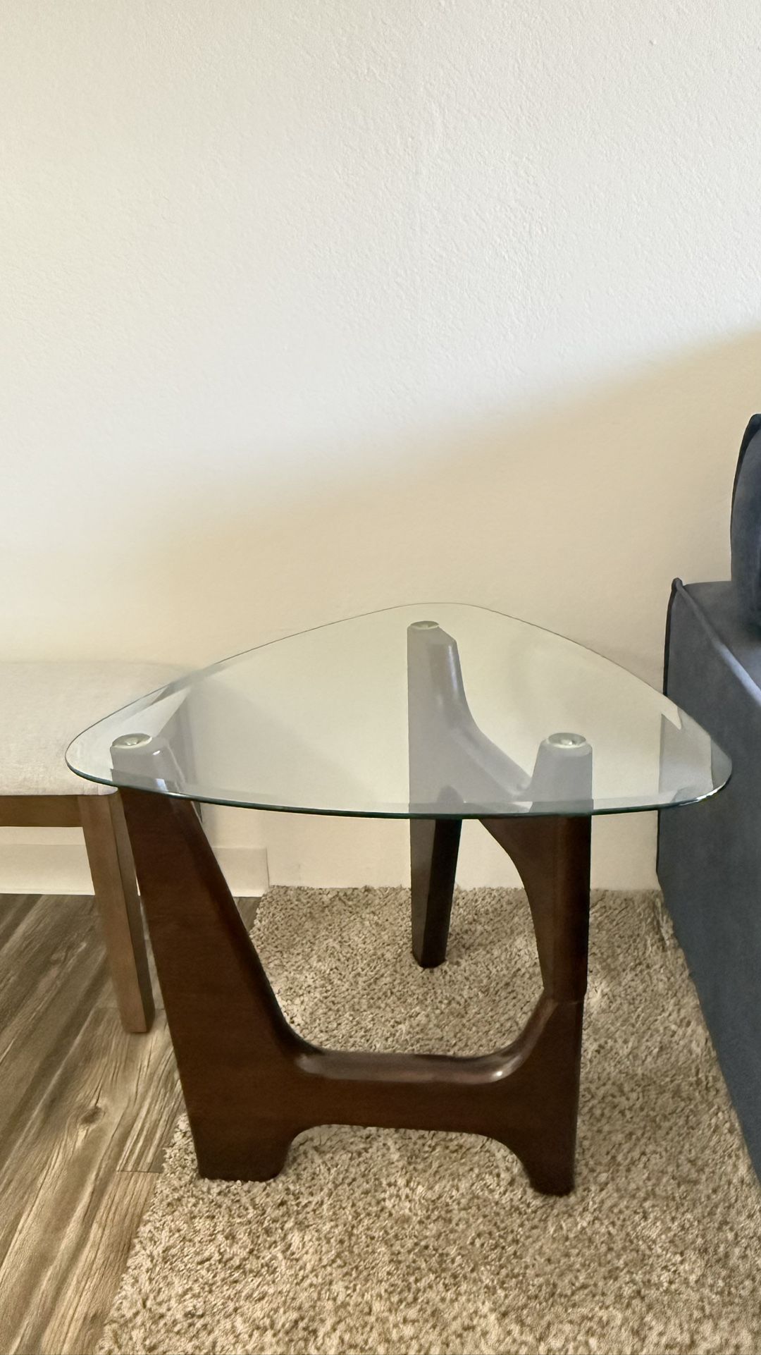 Triangle glass top table. 27"x27"