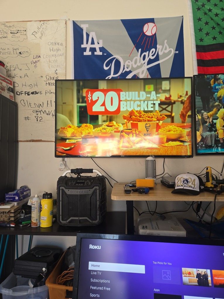Samsung 55 in not a smart tv. Great Condition excellent picture asking 80 bucks OBO. There's a vertical line on the left side of the screen barley noticeable if you didn't tell anyone they wouldn't even notice it.