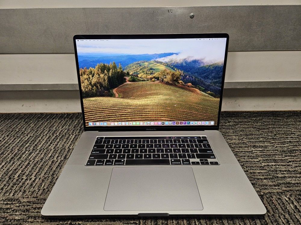 Manufacture Year: 2019 Clean install of MacOS Sonoma 2024 14.3.1 with Microsoft Office 2019, Adobe CC 2019 After Effects, Illustrator, InDesign, Premier Pro, and Photoshop, Logic Pro Specs: Intel Eight Core i9 CPU 2.40 GHz 32 GB RAM 500 GB SSD 16" Retina Screen Wireless WiFi Bluetooth Web cam TouchBar Keyboard Fingerprint reader 4 Thunderbolt 3 ports Backlit keyboard Good battery Comes with charger