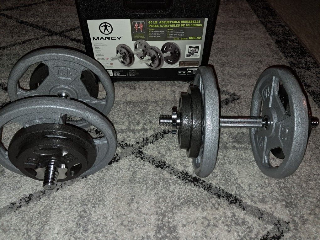 Like new. Posted individually also. Marcy SB-228 4× 4lb handles w/locks 4× 10lb 8× 5lb 8× 3lb