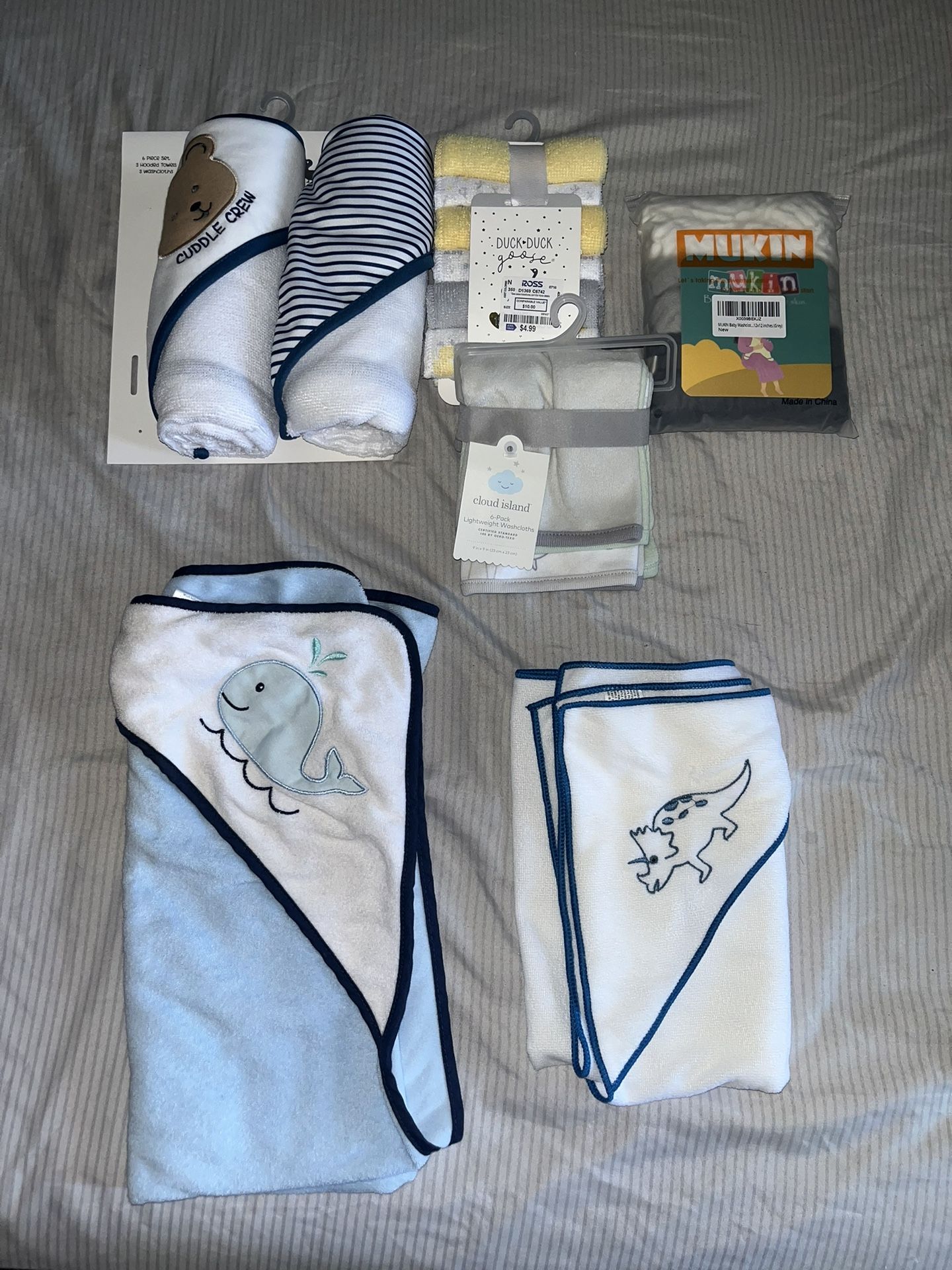 Most new with tags. Infant hooded towels and washcloths $25 for all OBO . Located in Santee 92071 WILLING to meet within reason Serious buyers only