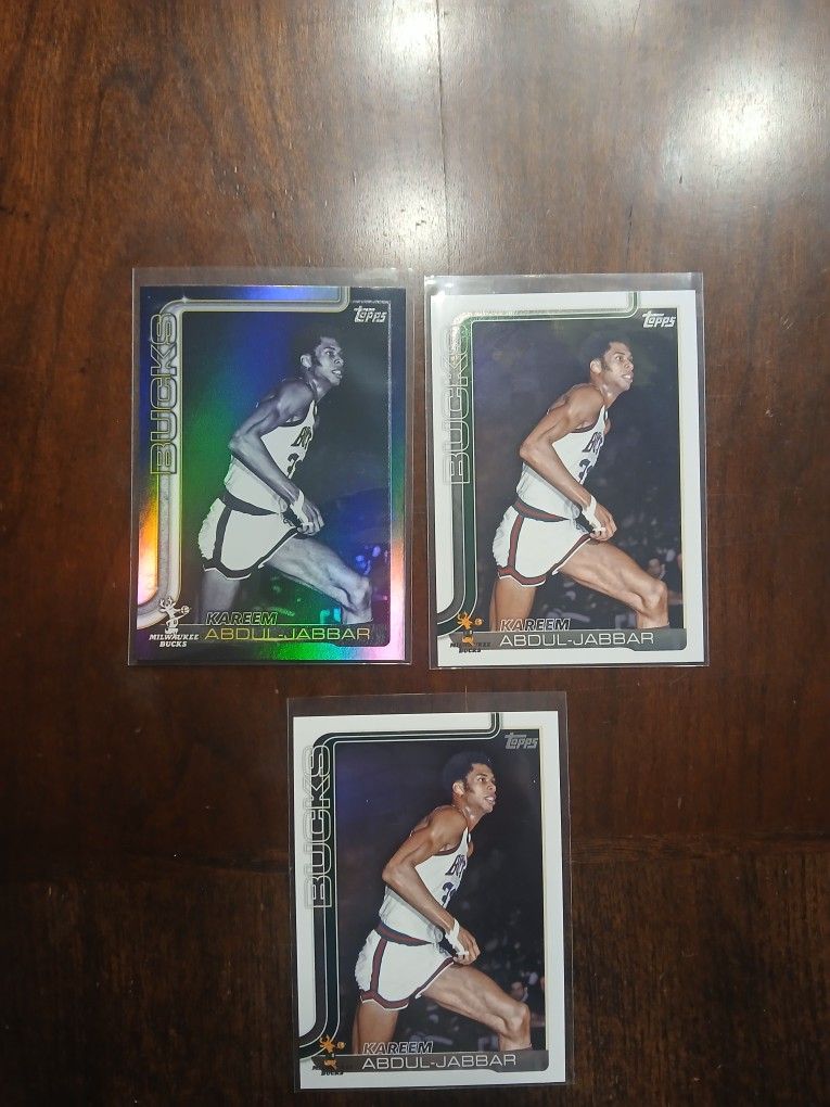 I have this 3 Kareem abdul jabbar cards for sale fresh pulls 1 blackout holo base & 2 bases papers im not looking I want $1.50 firm firm firm for all 3 offers will be ignored