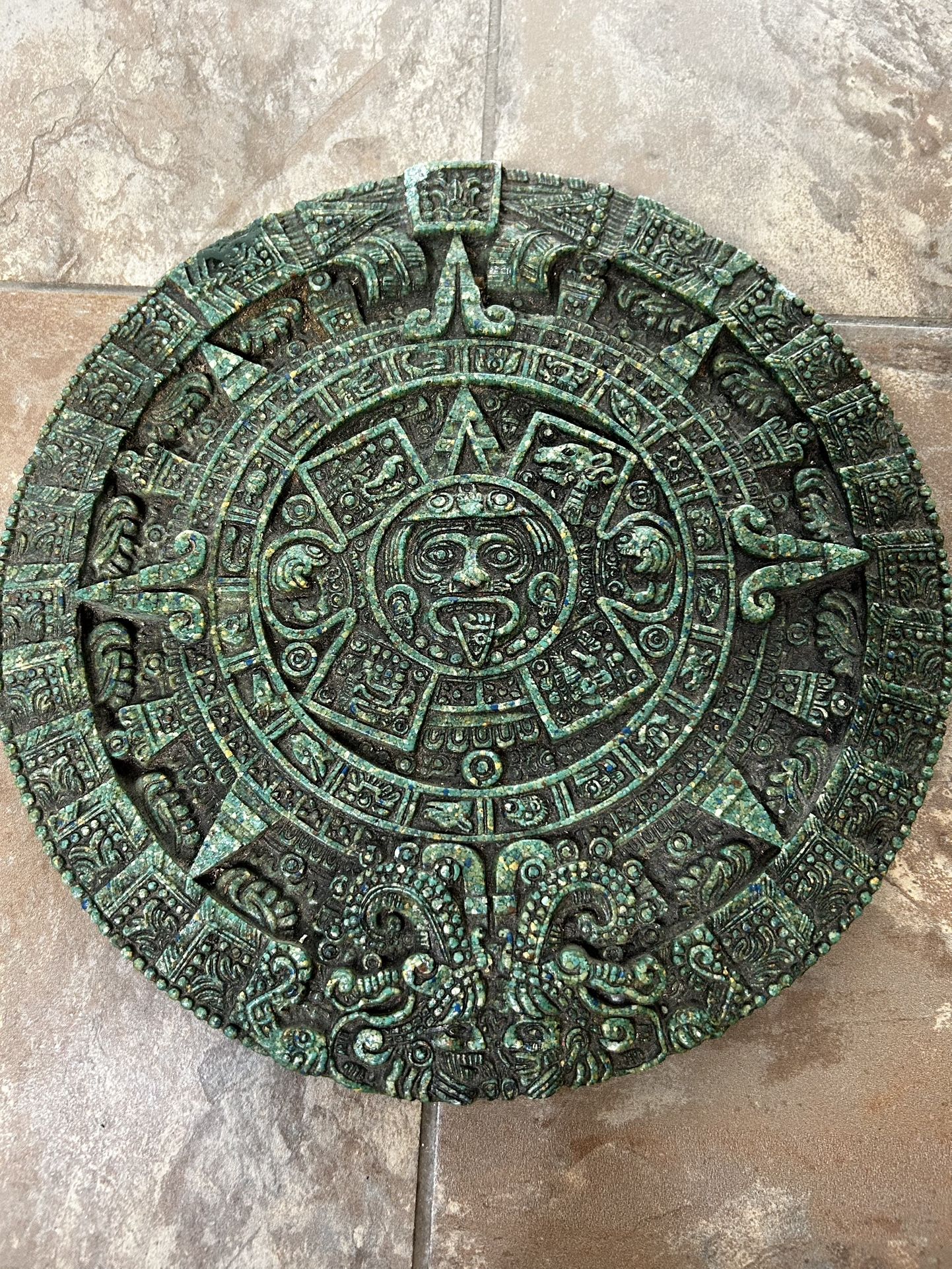 1950-60’s vintage stone malachite 11.5 inch Mayan calendars. 150 for both obo.