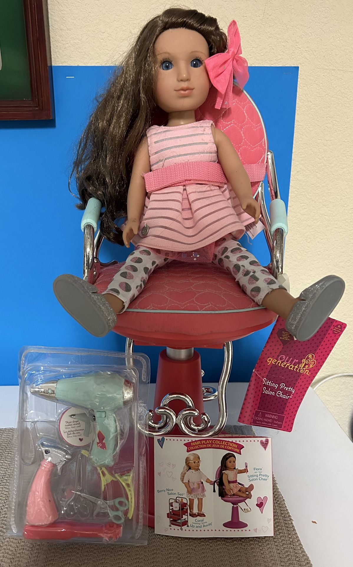 Our Generation Sitting Pretty Salon Chair with Doll and Accessories in very good condition. Only $15