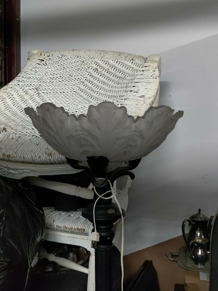 Cast iron vintage lamp. Don't know much about it, but in good condition.
