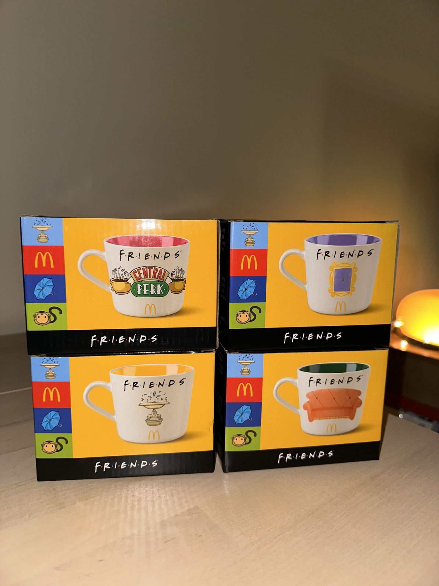 McDonald's Friends mugs are limited edition collectibles released as part of McDonald's Adult Happy Meal promotions, particularly popular in Spain in 2024 and Germany in 2025.