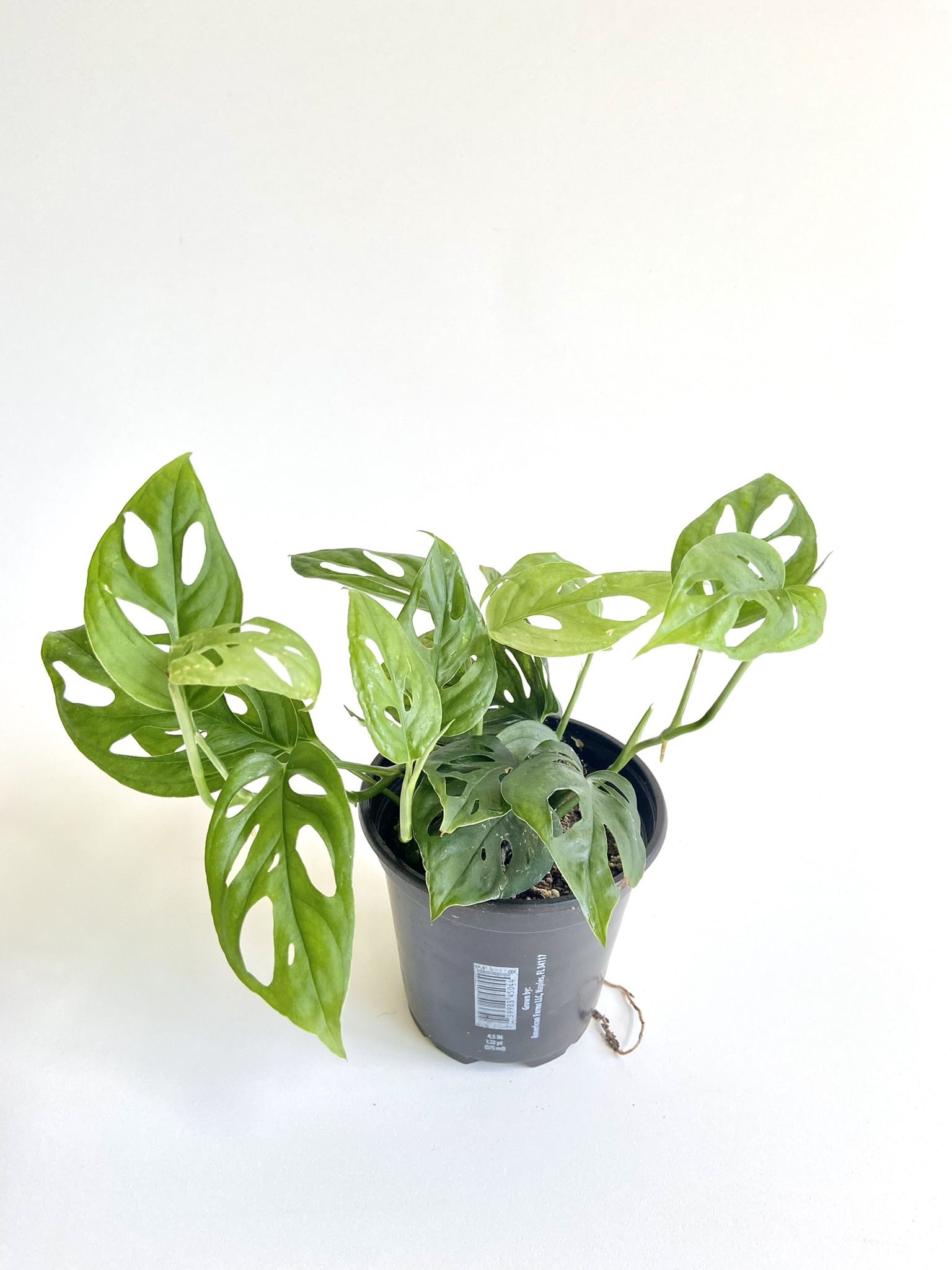 You will receive one fully rooted Monstera Adansonii in a 4” (diameter) container. Monstera Adansonii is nicknamed the Swiss cheese vine for its oval shaped leaves which feature split leaf holes, giving it a unique, stylish personality! Monstera Adansonii are often grown in hanging baskets which allows the vines to trail downwards. However, the Swiss Cheese Vine is equally impressive when allowed to climb a trellis or totem pole! Monstera Adansonii grow much smaller than their sibling, Monstera Deliciosa, making them perfect for indoor locations. Monstera love high humidity but can be sensitive to overwatering. The ideal spot for a Monstera Adansonii is a bright warm location. Light Needs: Bright indirect light is ideal. Can tolerate lower light, but may become “leggy” Water Needs: Medium water needs. Yellow leaves are a sign of overwatering Temperature Needs: Likes warm temperatures with high humidity. 65 to 85 Fahrenheit is ideal. Avoid temperatures below 45 degrees Fahrenheit Soil Needs: Use a peat moss based potting soilj