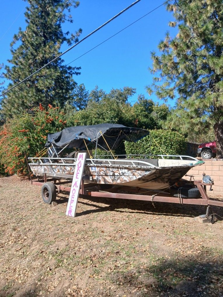 I have a Boat that I wish I could keep. 100 he mercury runs like new. 2005 back registration Trailer needs wiring. One owner. Have paperwork. Must go this weekend Or trade. Good tires with spair.. This Boat is complete. Lights work bilge pump works. Tachometer works.