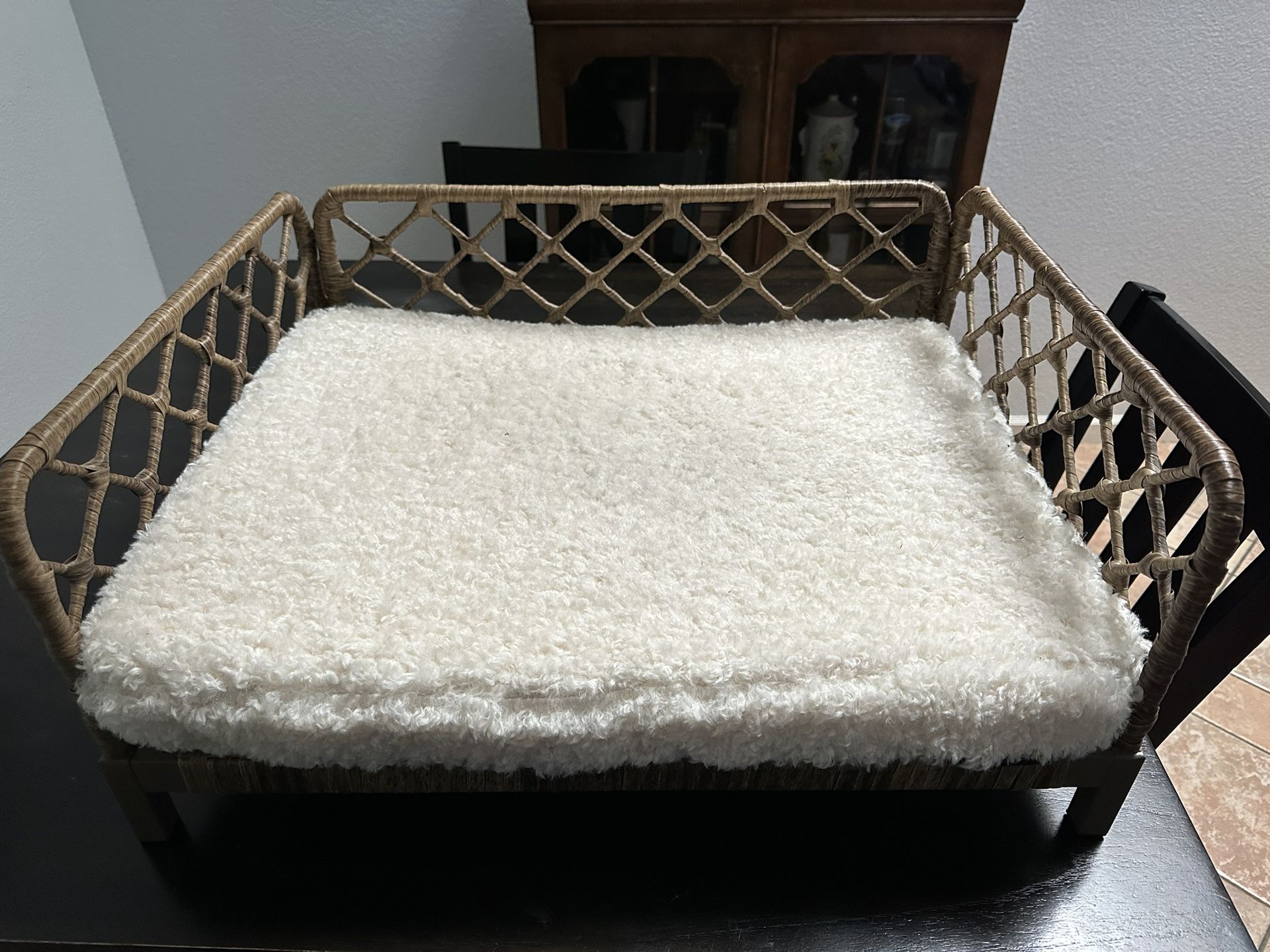 Great, comfy, soft bed!! Early Xmas gift for yours Took out of box and my pups laid for a few months and that was it. So to say new, I couldn’t do that to you - but also not “used!”