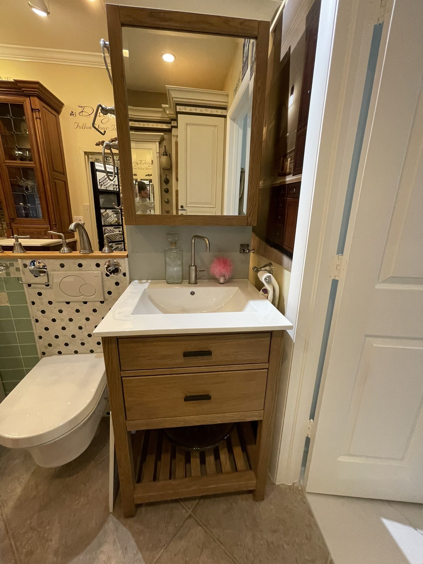 Bathroom Vanity Cabinet with Sink Countertop and Mirror. Furniture beach style, with weathered oak finish. Dimensions are: 24”wide x 21 Deep. Faucet not included. I do have faucets for purchase if interested. $700 obo