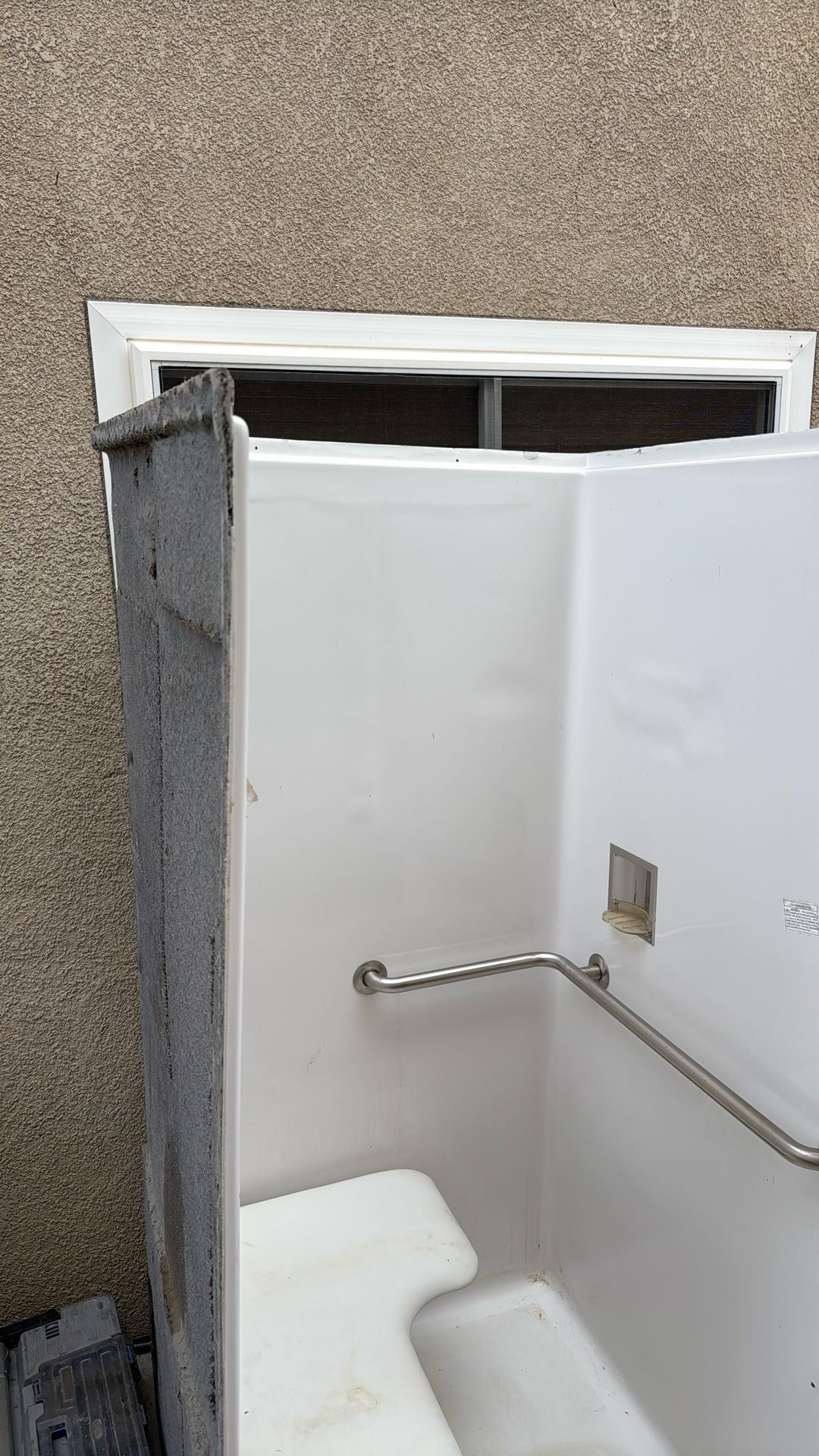 Brand new shower tub. Dirty and has one small scratch inside. Easy fix