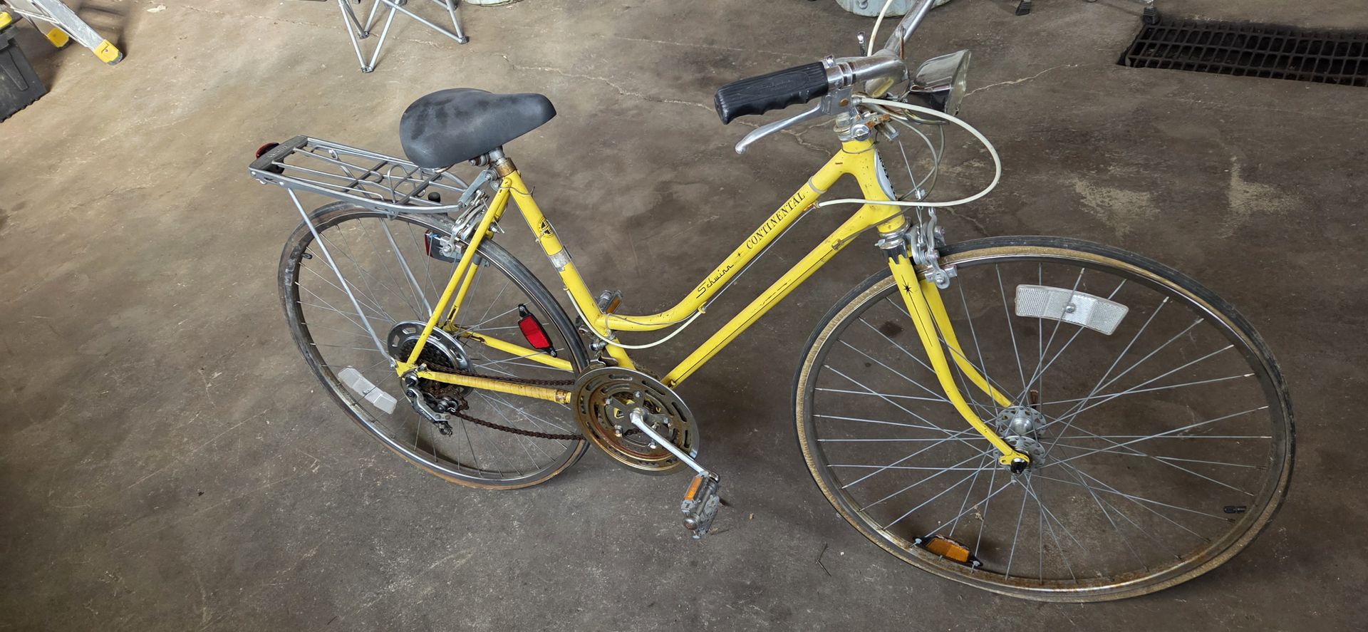 Schwinn continental vintage bicycle needs minor restoration but bike is completely original.