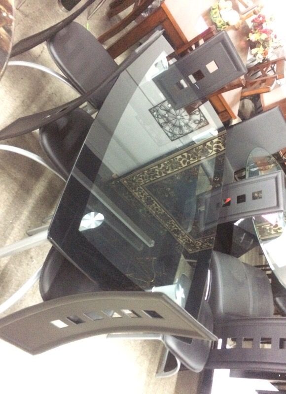 Glass table with 6 chairs