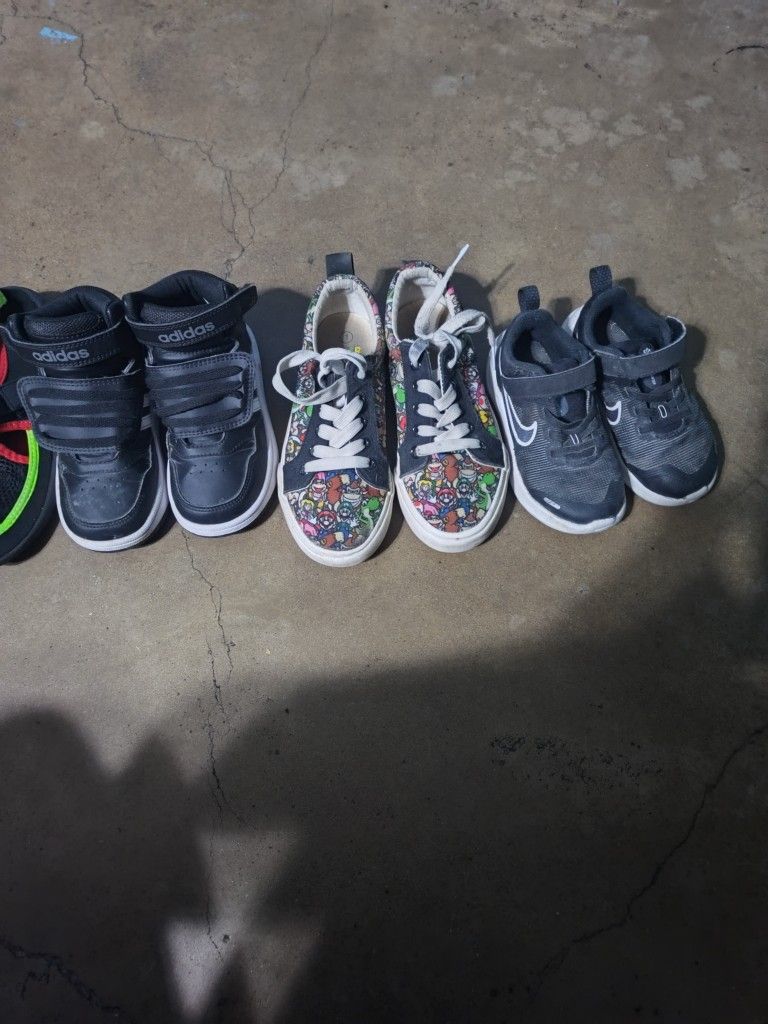 Adidas Size 9 Nike size 8 Mario Bros size 1 Water shoes black with green 2-3 Water shoes blue with green size 7-8 Take all of them for $10