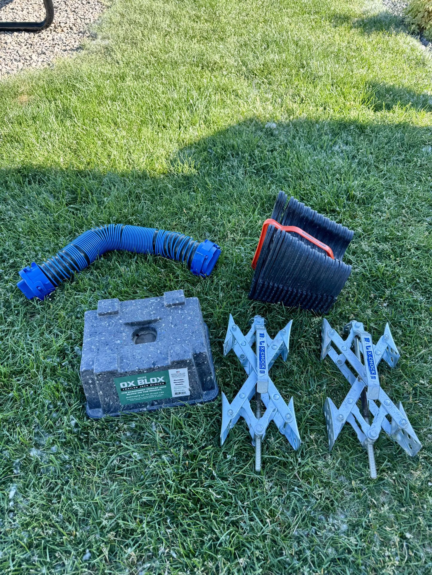 X Chocks : $30 OX BLOX : $30 CAMCO sewer hose support 20ft : $40 Sewer hose 3ft : $10