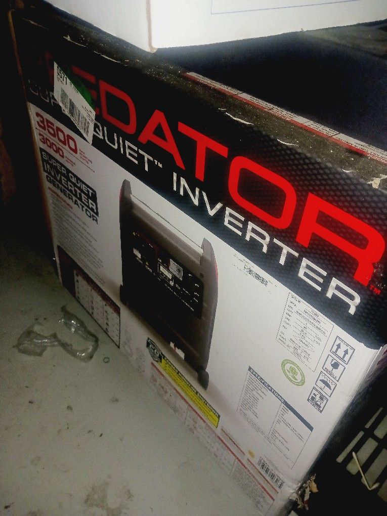 π Predator 3500 Super Quiet Inverter Generator β Power Without the Noise Need reliable, portable power without the roar of a jet engine? Meet the Predator 3500 Inverter Generator, your go-to solution for camping, tailgating, backup power, or job sites where silence is golden. π‘ Key Features: - Super Quiet Operation β Runs at just 57 dB, quieter than a normal conversation. Perfect for RVs, neighborhoods, and anywhere peace matters. - 3500 Starting Watts / 3000 Running Watts β Enough juice to power refrigerators, AC units, tools, and electronics with ease. - Inverter Technology β Delivers clean, stable power ideal for sensitive devices like laptops and phones. - Fuel Efficient β Up to 11 hours of runtime at 25% load. Save gas, save money. - Compact & Portable β Built-in wheels and handle make it easy to roll wherever you need power. - Multiple Outlets β Includes 120V AC, 12V DC, and USB ports to handle all your gear. π§ Condition: Brand new in box, never used. All original packaging and documentation included. --- Whether you're prepping for emergencies or powering your next adventure, this generator delivers performance, reliability, and quiet confidence. First come, first powered.