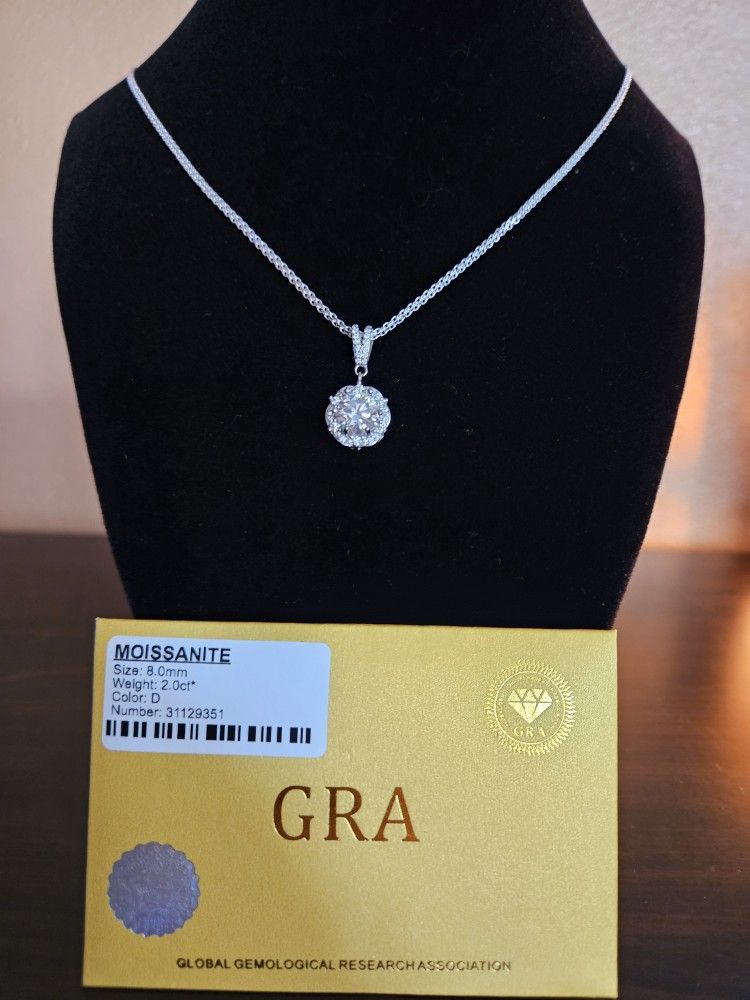 💎 Certified 2.0ct Moissanite Solitaire Necklace 24in chain -D Color, VVS1 Clarity, 925 Silver 💎 Make a bold statement with this dazzling solitaire moissanite pendant necklace. Featuring a brilliant 8.0mm round-cut stone (2.0 carats) in icy white D color and near-flawless VVS1 clarity, this piece rivals diamonds in sparkle and elegance—without the ethical or financial baggage. Comes with official GRA certification and holographic seal for authenticity. 💰💰Comparable market prices: - $199–$249 for fast resale - $299+ if bundled with certificate.
