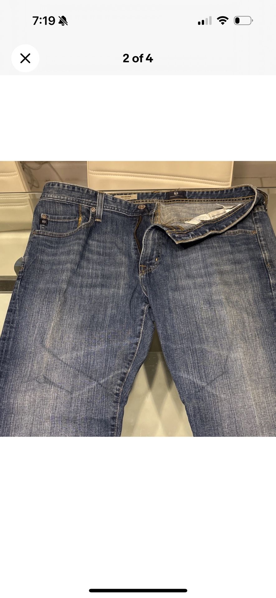 AG Adriano Goldschmied Men's Straight Leg Denim Jeans Blue Solid Button Zip