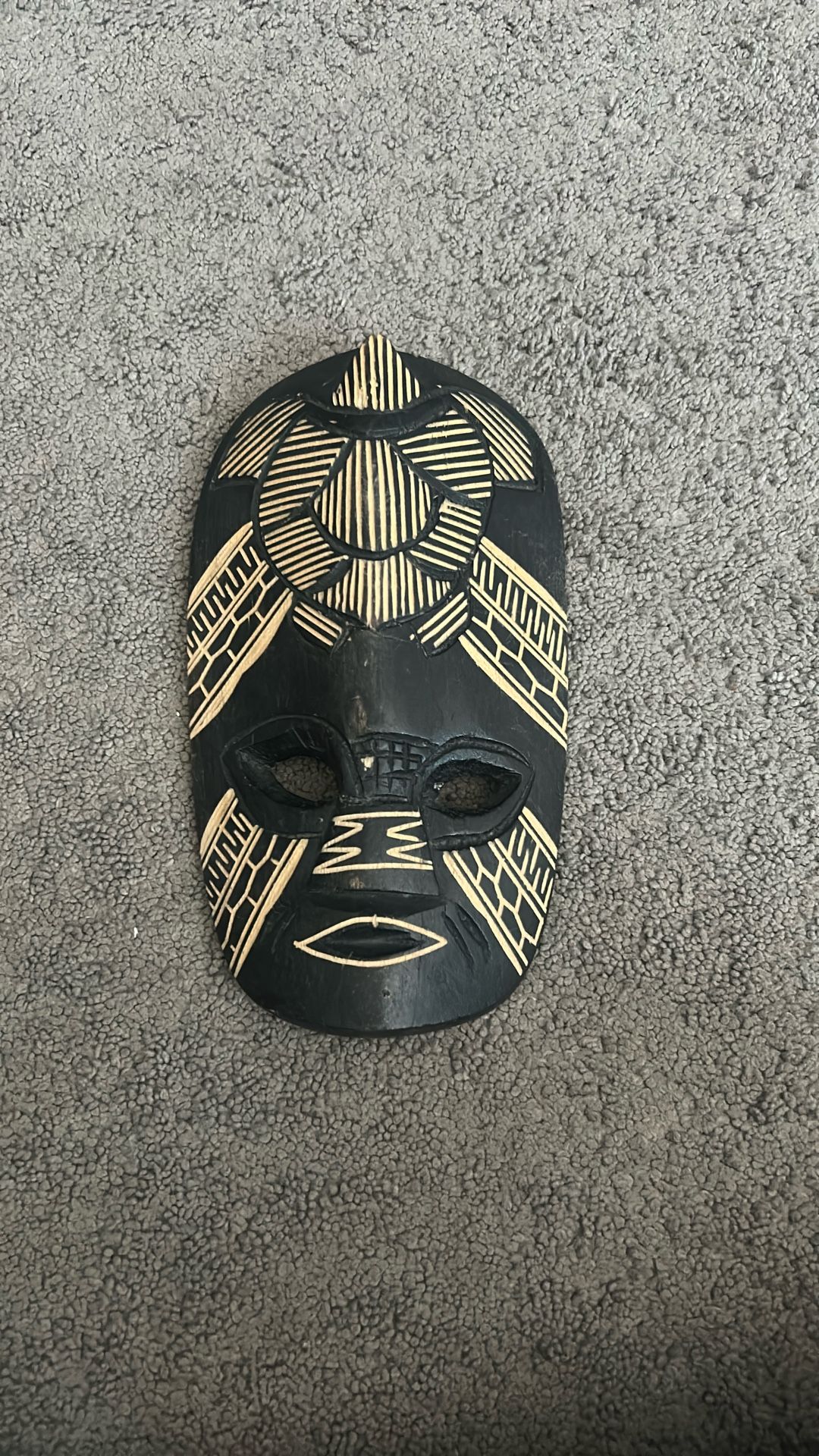 Fiji Tribal Vintage Black Mask Hand Carved Treated Wood Sea Decor
