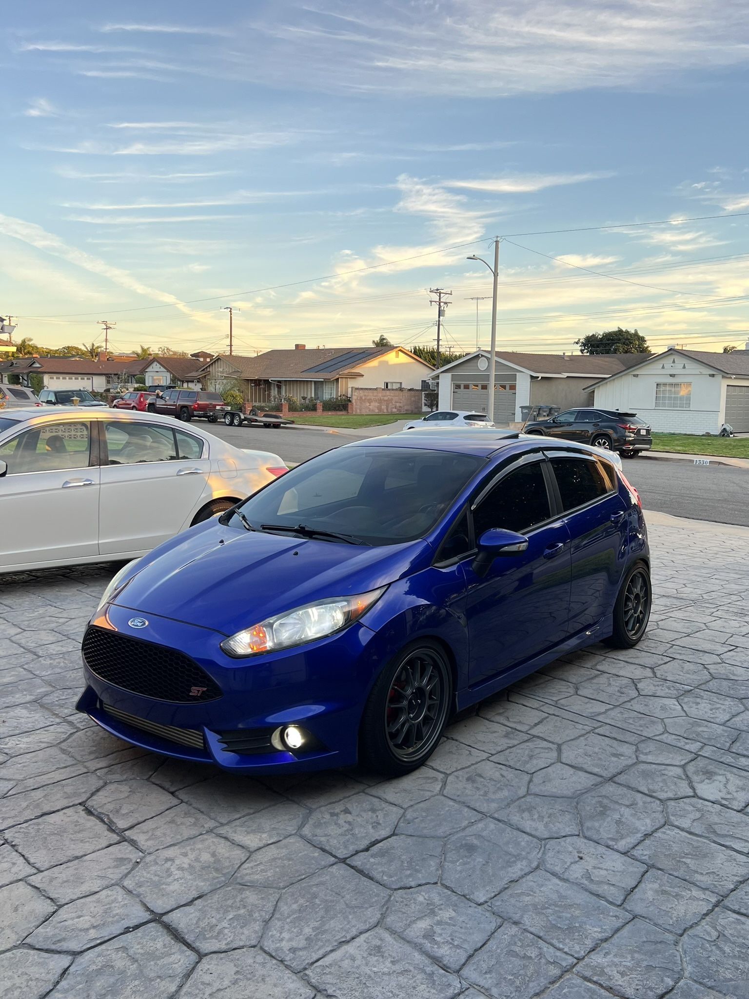 2015 Ford Fiesta ST Recaro seats w/ sunroof Performance blue Clean title 78k miles Testing waters. Very fun and reliable car, I just don’t drive it as much. Gets great mpg. Runs and drives great. I’ve recently added a whoosh intake (will return back to stock for buyer’s ease), H&R super sport lowering springs, weighted shift knob, and rain guards. Other modifications: Sync 3 head unit upgrade Full Cobb intercooler kit (Carb legal) Konig hypergram wheels Led lights all around Diode dynamic fog lights Cobb rear motor mount Weather tech mats Resonator delete Abs brake module, front brake calipers and pads, passenger blend door actuator, and engine oil recently replaced. Will also include a set of Advanti Storm wheels, new driver’s side blend door actuator, and oem shift knob, springs, and grill insert Cons Minor cosmetic imperfections A/c doesn’t blow cold- will need to be recharged
