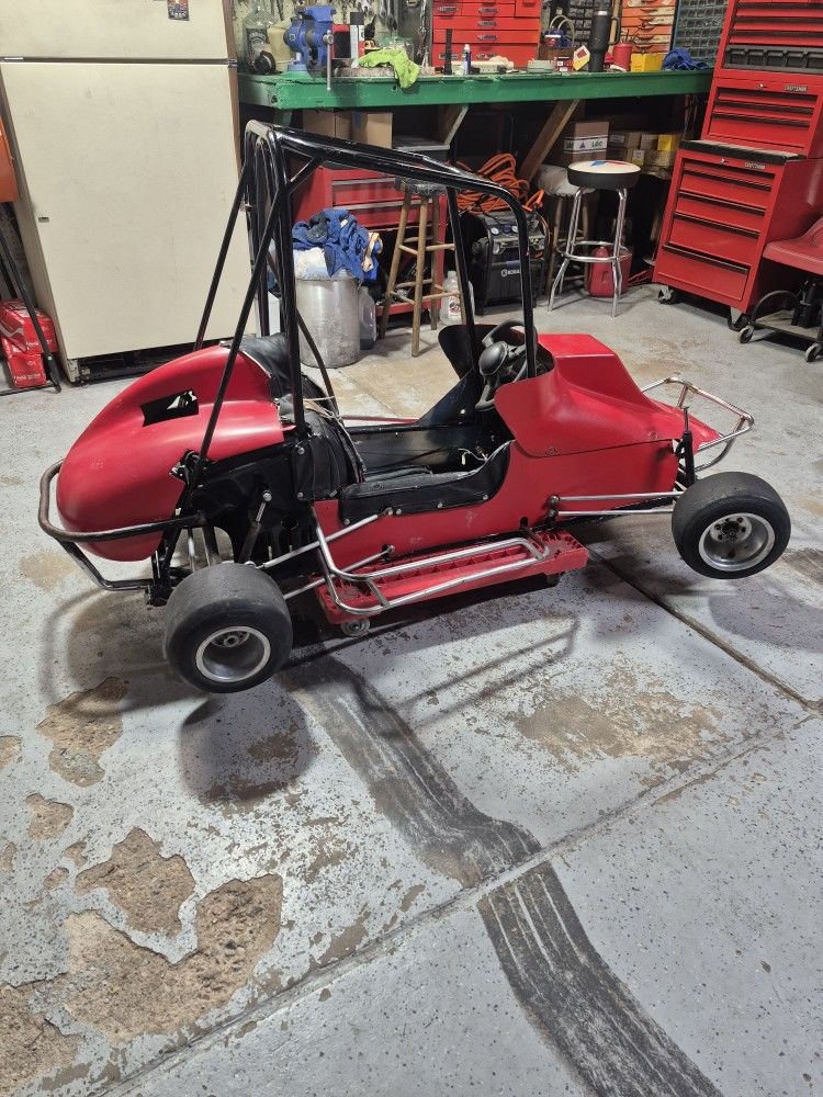 Runs Drives Stops, 1969 Vintage Quarter Midget Race Cart Push Start or Drill start, has Live Axel powered by a Honda GX120 Top speed can range from 45 to 60 MPH depending on what set up you want to run. Ready to run. This is a Small Kart for kids ages 7 to 14, the average adult won't fit, definitely for people under 5 Foot 5 inches $600 Will NOT let allow test rides unless Cash is in hand.