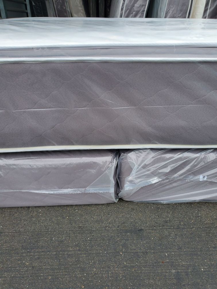New King Size Pillow Top Thick Mattress And Box Spring. Delivery Is Available