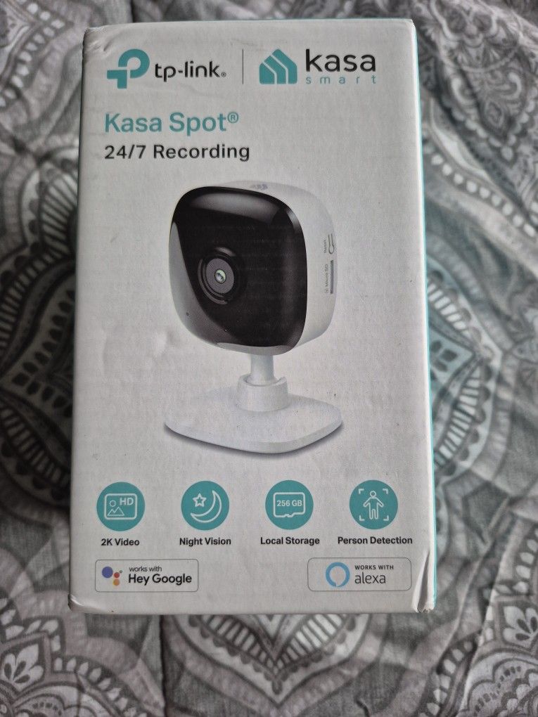 Like New - Open Box !! Kasa Smart 2K QHD Indoor Security Camera - Person/Baby Crying/Motion Detection - 2-Way Audio, 30Ft. Night Vision - Cloud/SD Card Storage(Up to 256 GB) - Works with Alexa & Google Home (KC400) Includes: 1x Kasa Spot 2K Camera 1x Power adapter 1x 10 ft USB Cable 1x Quick Start Guide 2 x Mounting Screws 1x Mounting Template
