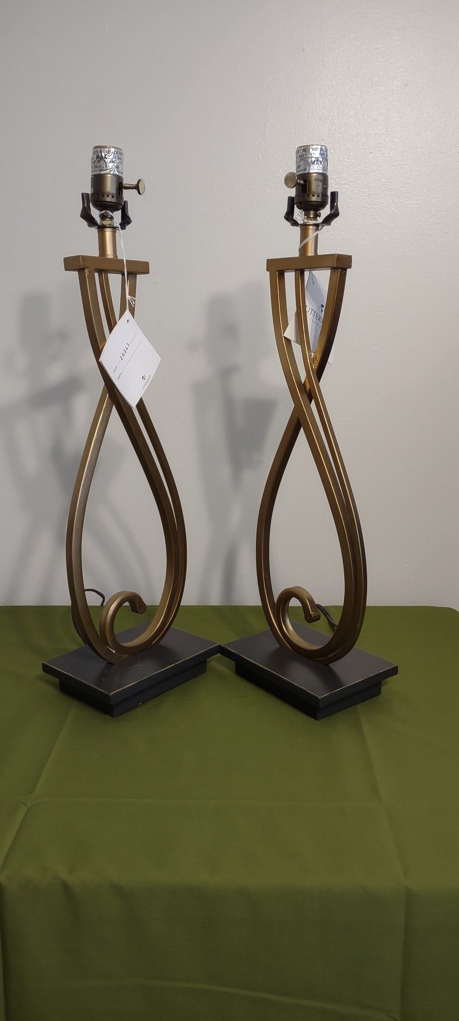 Almost makes stylish lamps that many interior design companies use. Just over 23 inches from bottom of base to top of socket. Will be taller when you add lamp shade. Base is 5 in by 7 in. Lamps only, no shades. You can still find these online starting at approximately $220 per lamp. These lamps will be beautiful when you put your own lamp shades on them. I only used this lamp shade to photograph how it looks when lighted. More photos to come.