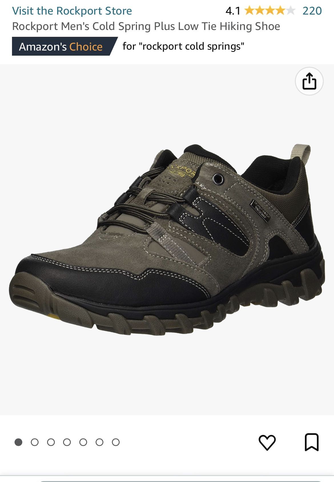 BRAND NEW IN BOX size 6.5 Rockport Men’s Cold Spring Plus Low Tie Hiking Shoe 100% leather, rubber sole, machine washable Originally $90 About this Item Waterproof materials EVA footbed Rubber outsole EVA midsole Description Built with hydro-shieldt waterproof construction, moisture wicking linings, and rubber outsoles, your feet will be kept dry and secure. An eva midsole absorbs shock, while a lightweight comfort system will help keep you comfortable.