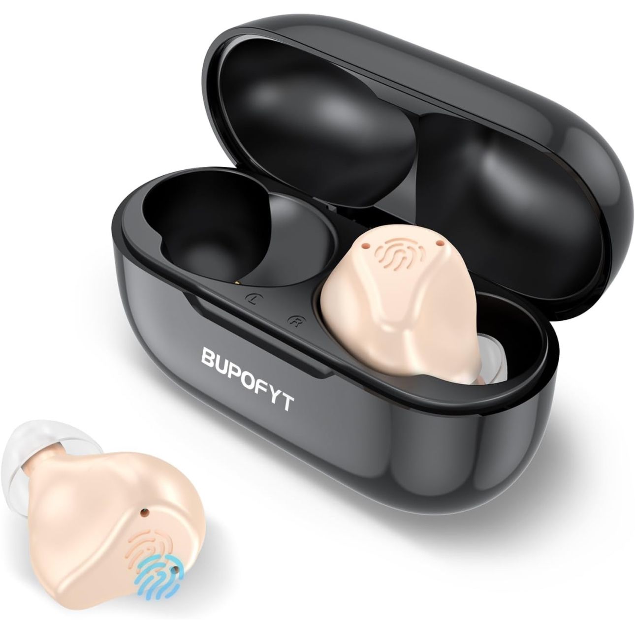 【Hearing Experts Around】TM-216 Hearing Aids for seniors are the best solution for mild to moderate hearing loss. You can be touched by sound again. Your satisfaction is our priority and we offer a 12 month guarantee. Makes a great gift to help family and friends enjoy a better hearing experience. 【Intelligent Noise Reduction】BOFYUT Digital Hearing Aids use advanced AI chip and 16-channel sound processing technology to filter out 90% of background noise, providing rich listening experience while naturally enhancing human voice. Dual microphones detect sound direction, providing unparalleled audio quality. 【Personalised Listening Experience】5 levels of volume control and 3 modes allow you to personalise your listening experience. Easily meet your communication, TV or noisy environments such as parties or outdoor activities. For those who suffer from tinnitus, the unique Tinnitus Masking Mode helps block out ringing or harsh sounds. 【One Smart-Touch】Squeal-Free Hearing Amplifiers Automatically turn on when take it out of the charging case, turn off when put it back. Quick touch to adjust volume, press 2 seconds to switch mode, long press 5 seconds to turn on/off. Use it for 20 minutes to turn on the memory mode, we will keep your last mode and volume. 【Quick Charge & 100H Endurance】Don't let battery problems derail your day. Our OTC Hearing Aids last up to 25 hours on a single charge, and the charging case provides up to 75 hours of battery life. The best part? It only takes 2 hours to fully charge, with a total battery life of up to 100 hours ~ so you're always ready to take on the world. 【Comfortable to Wear】The Hearing Aids for seniors are ergonomically designed to be comfortable to wear and perfectly fit the unique contours of your ears. They provide a virtually invisible hearing solution that blends in with your skin tone. There are four sizes of ear tips (L/M/S/XS) to choose from for maximum comfort.