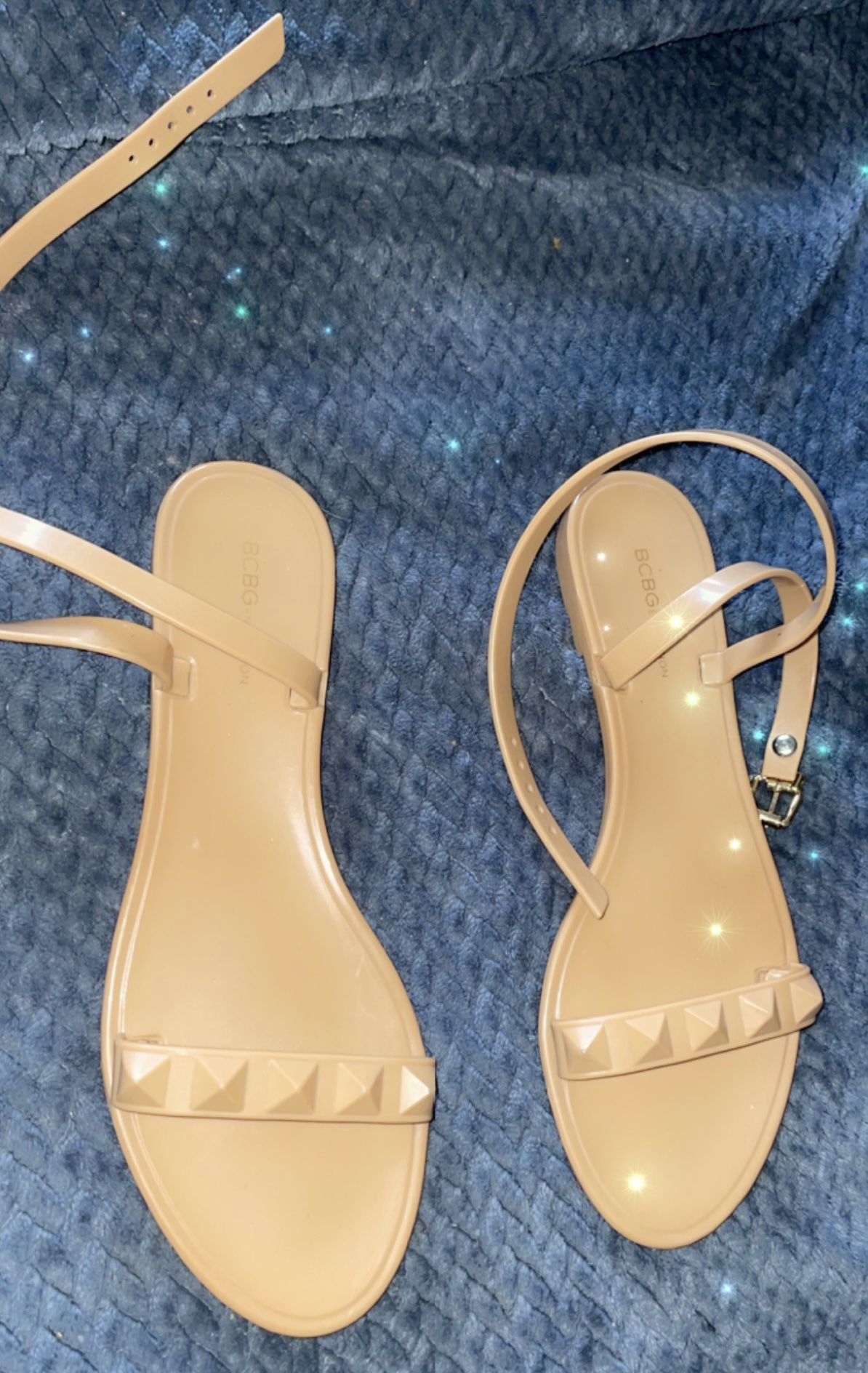 ladies BCBG studded flat Jelly nude sandals (size 10B/40)