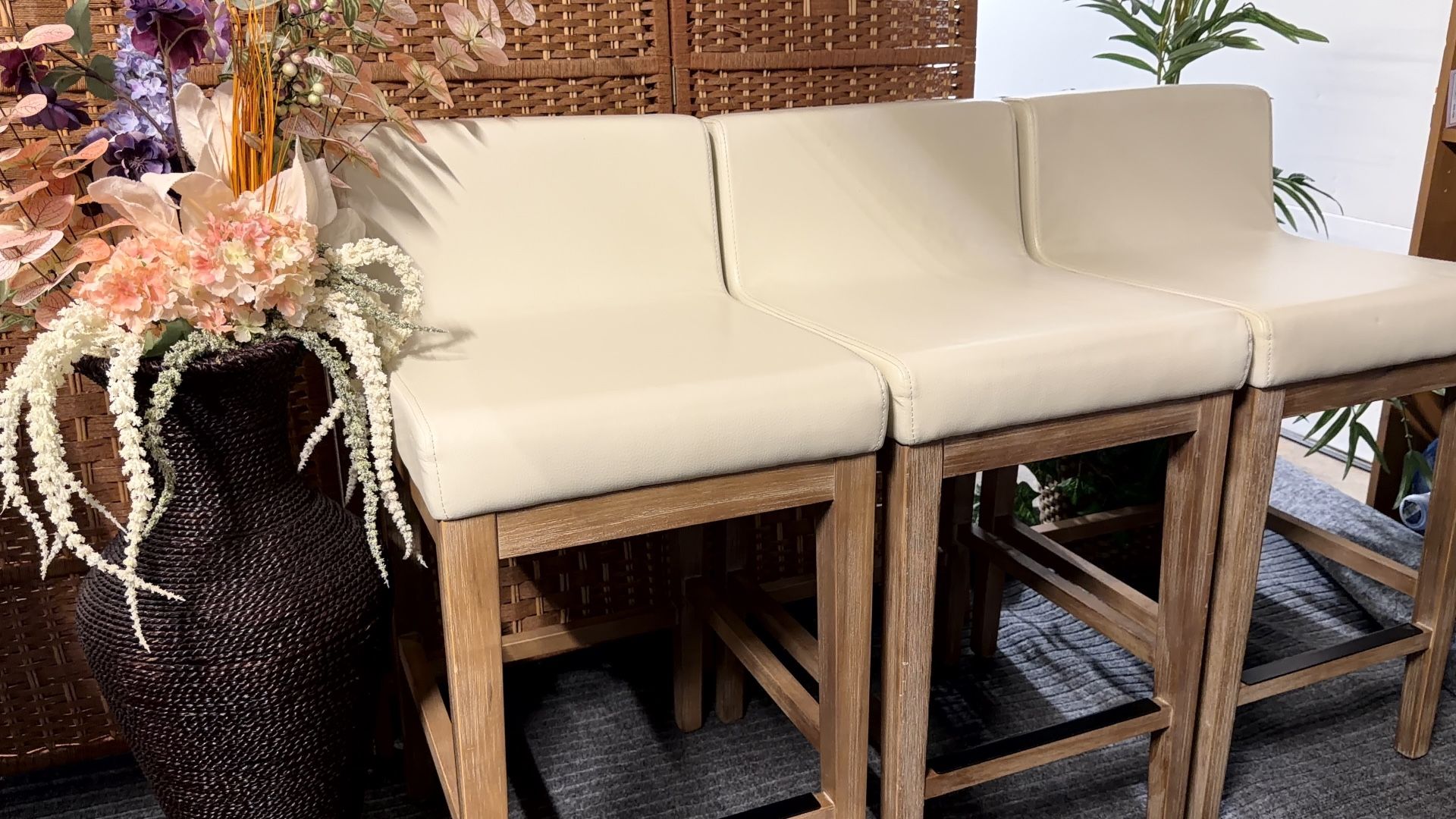 (3) Modern Counter Height Barstools in a cream Upholstery Color. Delivery Available π.