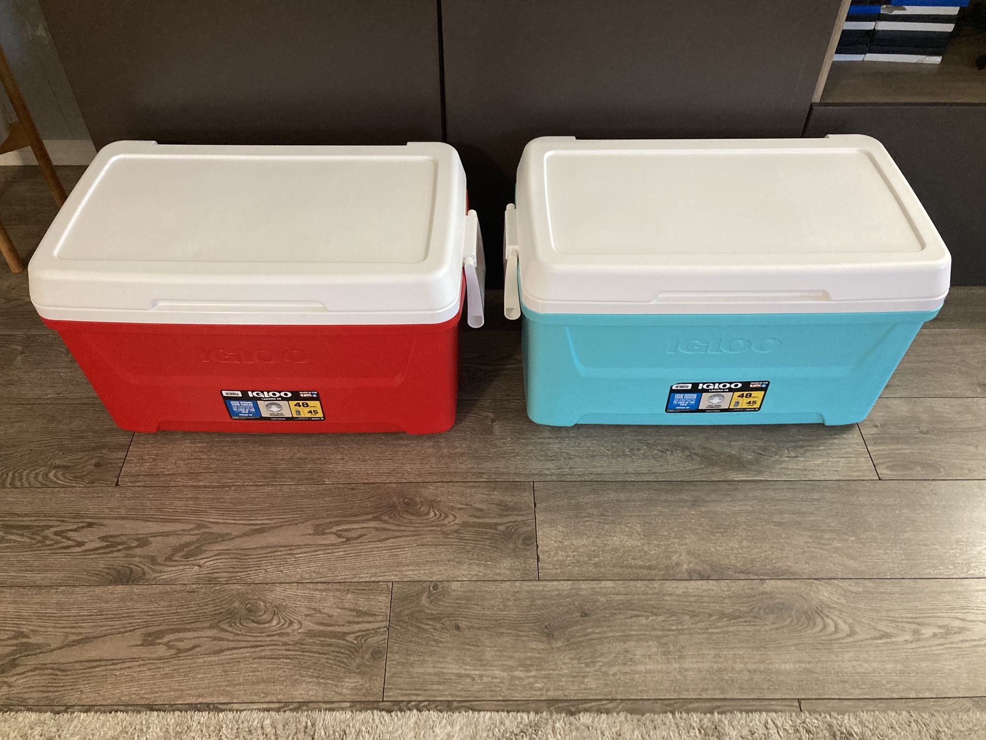 First come first serve, OBO, $35 each or both for $55 Blue cooler has a small scratch showed on last photo