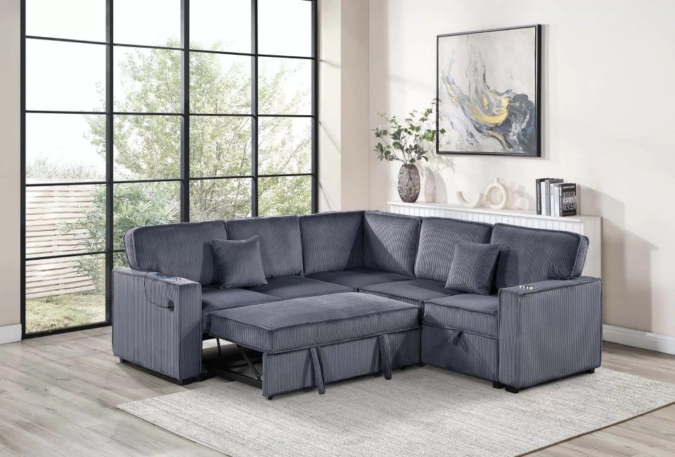 Storage Sofa: 56" x 34" x 36" H; Corner Wedge: 34" x 34" x 36" H; Sleeper Sofa: 56" x 34" / 59" x 36" H Material Color: Dark Gray; Material: Corduroy Solid Wood+Plywood+Spring+Foam+Polyester Fibers+Polyester Fiber Banting+Webbing+Hardware+Mechanism✅️✅️$498+ sale tax $550 cash only ✅️ this promotion is just pick up ✅️ only delivery is not available ✅️✅️