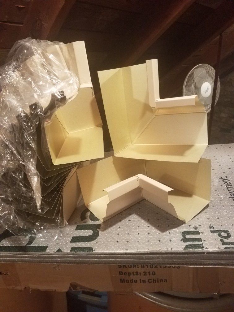 6" aluminum inside gutter corner By spectra metal. Color sandstone. Normally $ 24. I will sell for $15. Each Have 11.