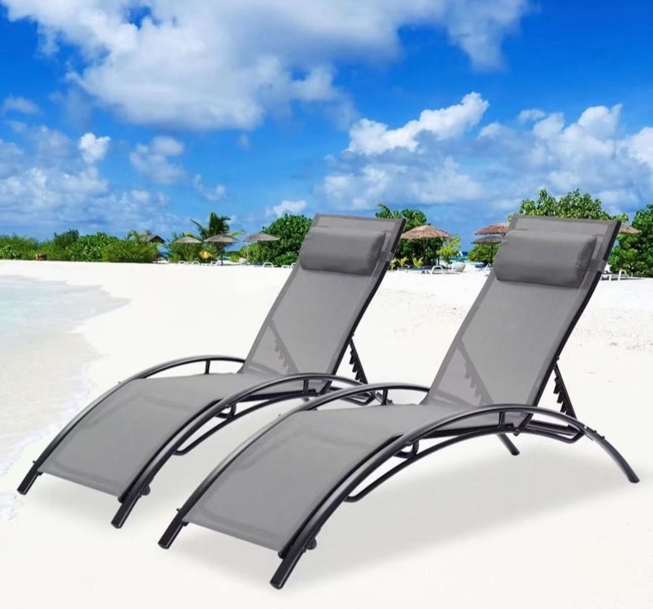 2PCS Set Lounges Outdoor Lounge Chair Lounger Recliner Chair for Patio Lawn Beach Pool Side Sunbathing (Gray)