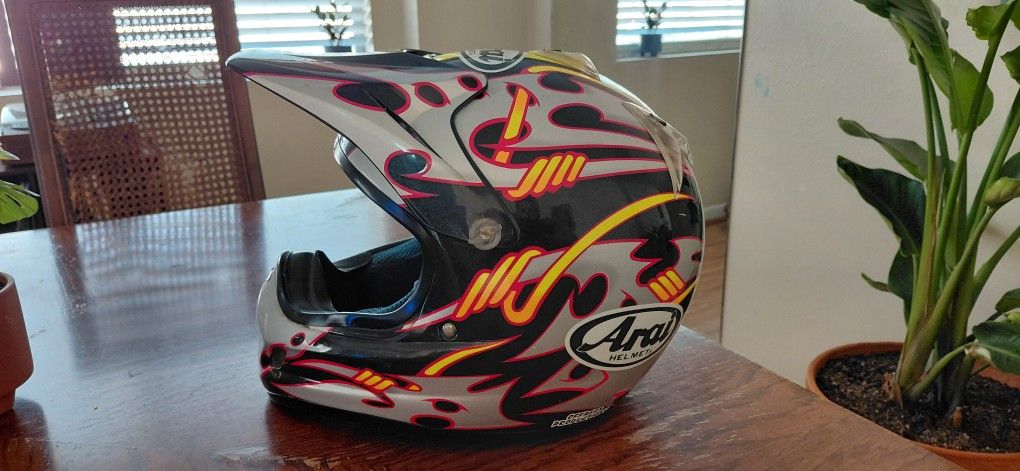 Used Arai VFX xl helelmet. This is a Nicky Hayden replica that would make a great collectible or sho a piece for any motorcycle enthusiast