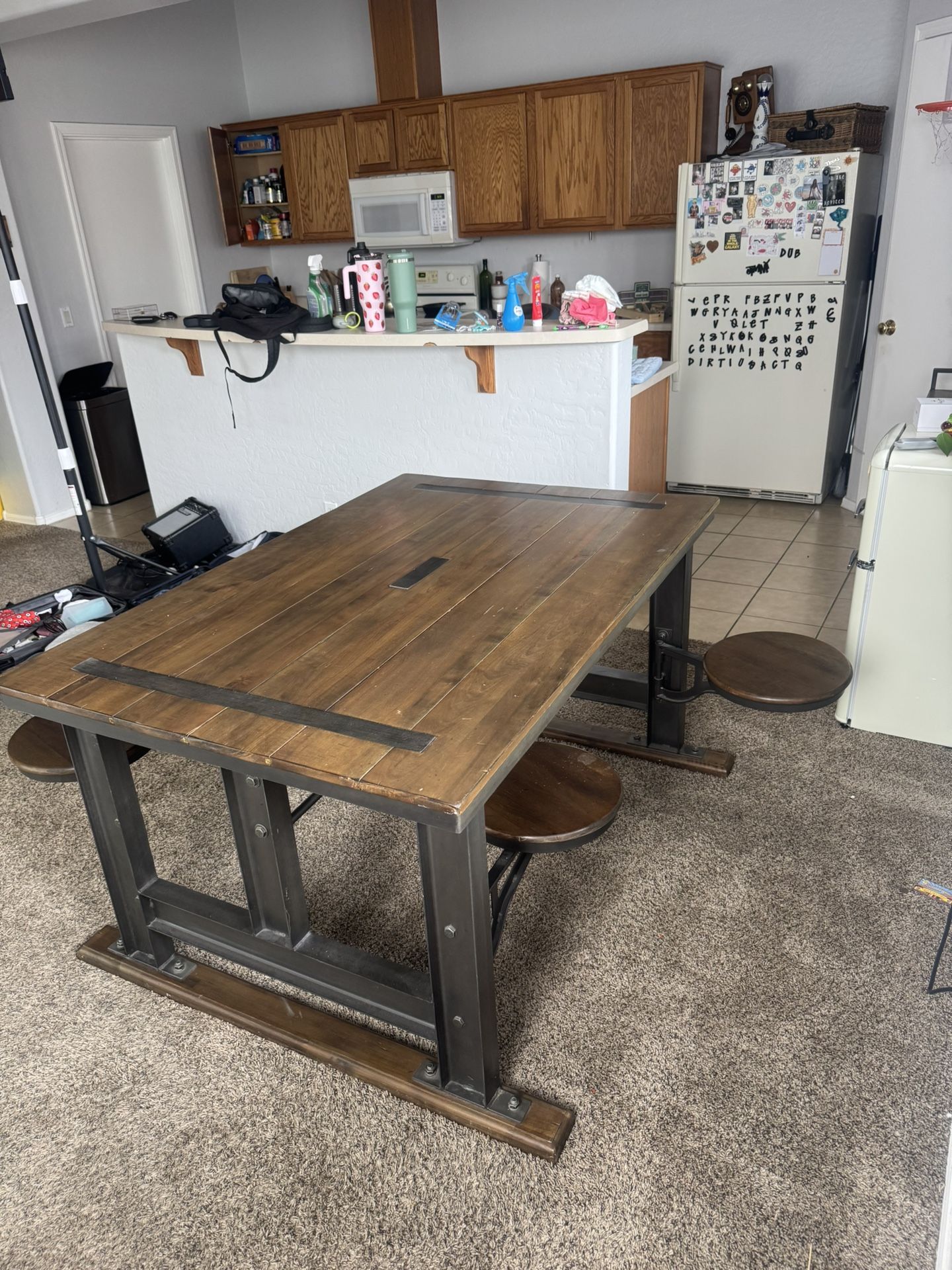 Purchased for 800 at work market. Love this table but we never use it. Fair condition. Will disassemble before arrival, will need to pick up, can help load onto truck